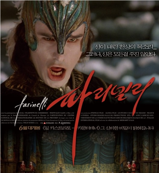 영화 파리넬리를 아신다면 연배가 좀 되셨거나 영화를 정말 전문적일정도로 잘 아시는분이 아닐가 싶어요. 벌써 영화가 나온지 30년이 지났지만 파리넬리 영화를 보신 분이 아니더라도 이 영화 제목을 듣는다면 누구나 떠오르는 장면이 있을것입니다. 저 또한 마찬가지입니다.