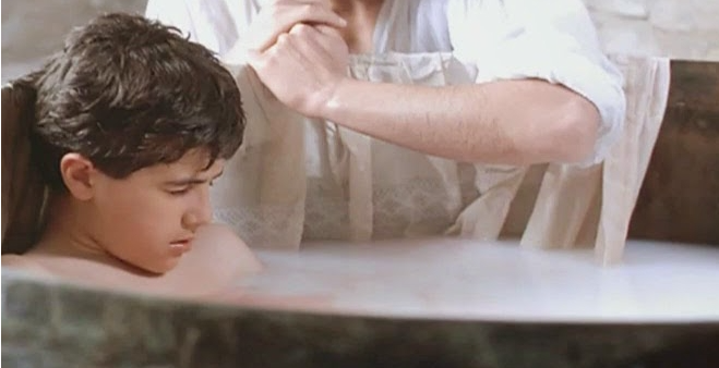각종 매체의 영화 리뷰에서 정말 수 없이 나온 장면입니다. 온 힘을 다해 열창하는 파리넬리의 클로우즈업 장면과 욕조에서 화확적 거세를 하는 아이. 영화 파리넬리는 이렇게 어린 나이의 남자 아이가 목소리의 변성기를 막기 위해 거세를 당하는 이야기로 시작됩니다.