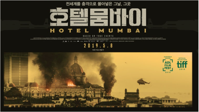 재밌었던 영화 하나 추천하고자 합니다. 영화 호텔 뭄바이는 2008년 실제로 인도에서 발생한 테러를 바탕으로 영화화한 작품입니다. 뉴스를 보신 분은 기억하시겠지만 그날 테러범들은 수류탄과 자동소총을 무차별적으로 난사했으며, 그로인해 공식집계로 188명이 사망하고 293명이 부상한 세계적으로 화제가 된 테러 사건입니다.