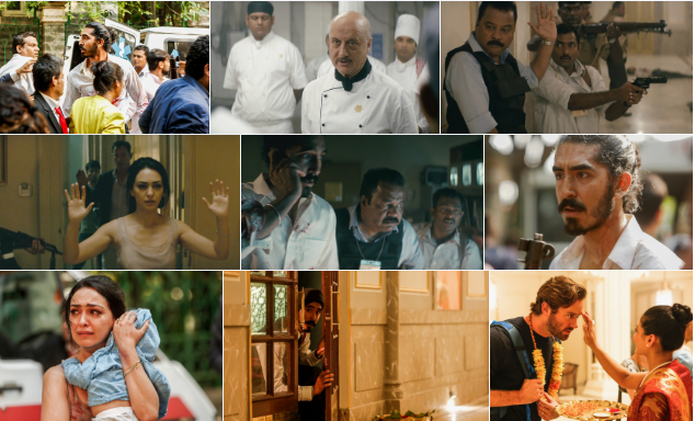 2008년 11월 인도 뭄바이에 군사 훈련을 받은 테러범 10명이 들어옵니다. 그들은 앞에서도 애기했듯이 사전답사로 가장 사상자를 많이 낼곳을 골랐고 조를 나누어 테러를 자행합니다. 무자비한 난사로 많은 여행객들이 죽임을 당하고 맙니다. 한 여행객 커플은 다행이 도망치는데 성공하고 도시에서 가장 큰 타지마할 호텔로 들어갑니다.