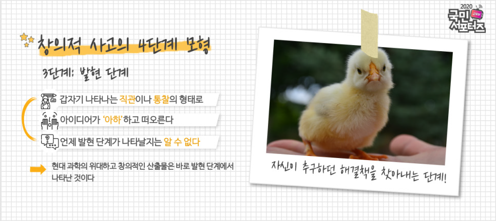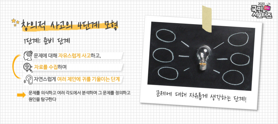 창의적 사고는 문제를 해결하는 데 필요한 인지능력. 즉, 문제해결을 위해 기존의 정보들을 좀 더