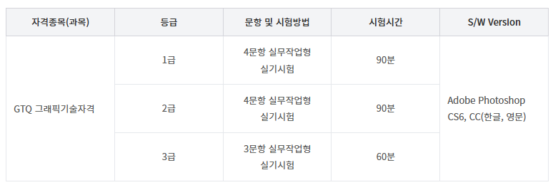 우리가 디자인 자격증이라고 하면 먼저 생각나는 것이 GTQ 자격증일 것입니다. GTQ는 대한상공회의소, 한국생산성본부에서 주관하는 자격증인데요. GTQ포토샵, GTQ일러스트, GTQ인디자인의 세 가지 자격증으로 나누어져 있고 1급과 2급이 국가공인 자격증으로 인정되고 있습니다. 대학생과 디자인에 관심있는 일반인들이 주로 응시하고 있으며 최근 GTQ 자격증의 수요가 증가하면서 그 때문인지는 모르겠지만 문제의 난이도가 점점 어려워지고 있는 추세이기도 합니다.